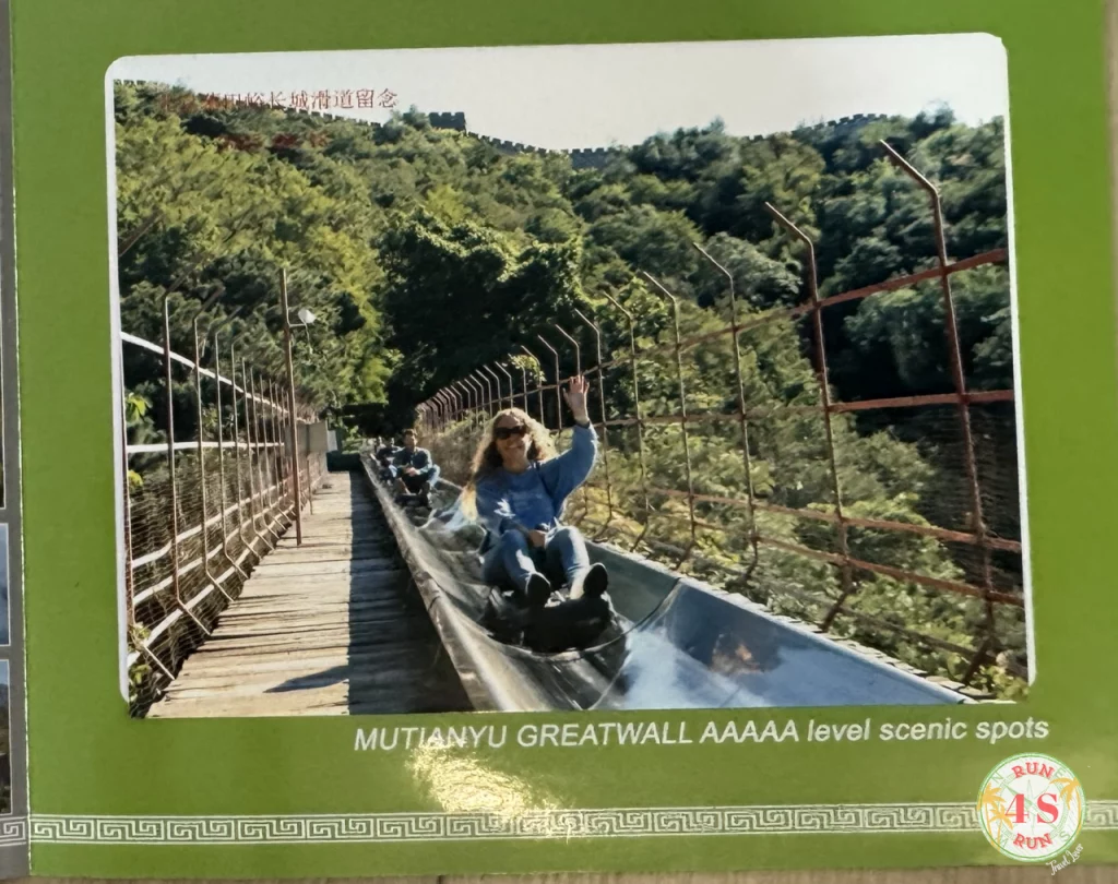 La bajada la hicimos por el tobogán, que recorre la montaña hacia abajo y el cual diriges mediante una palanca. Al ir por el interior de la montaña no tienes vistas de la Gran Muralla pero es una forma divertida de bajar.