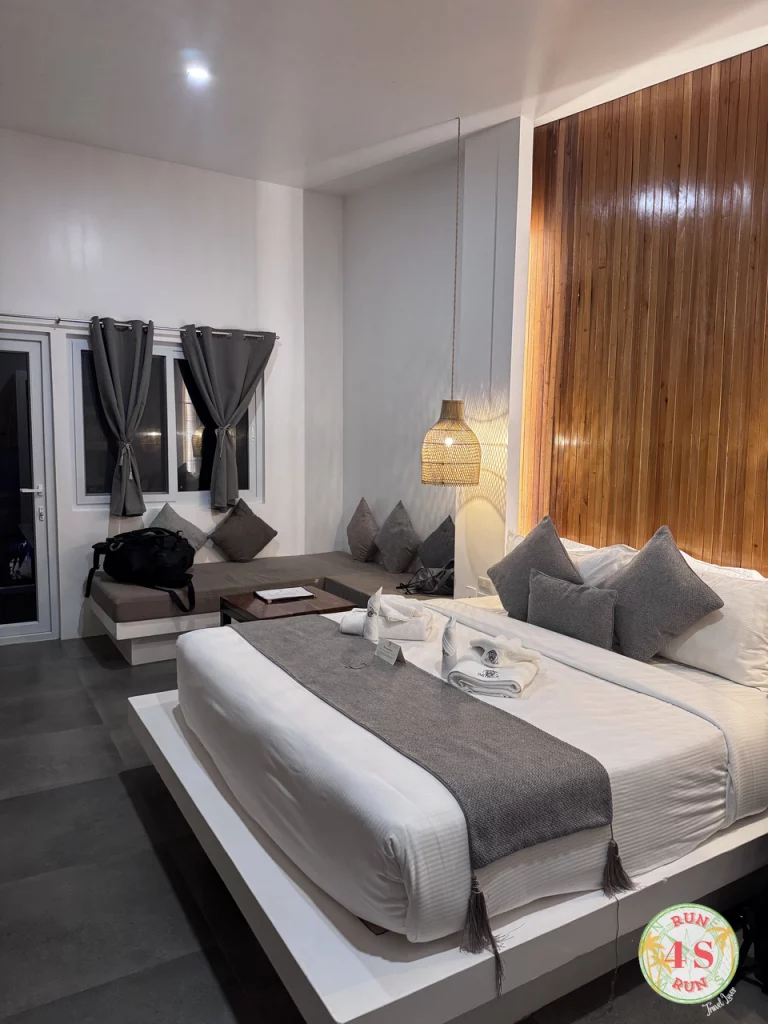 Este hotel fue el más caro del viaje, pero también el más bonito. Está ubicado en General Luna, entre la zona del pueblo y el Cloud9, por lo que en 5 minutos en moto estás en cualquiera de las dos zonas. El personal fue amable y nos ayudó con el alquiler de motos. También ofrecen servicios de excursiones. La zona de la piscina es espectacular con unos jardines preciosos y un pequeño gimnasio. Está conectado con un restaurante donde sirven brunch por la mañana y se convierte en Roots por la noche, un restaurante de cocina de diseño con mucha fama pero de precio elevado. Las habitaciones estaban limpias, eran espaciosas y con terraza. Pagamos un total de 179 euros por persona durante 4 noches y también me parece muy recomendable.