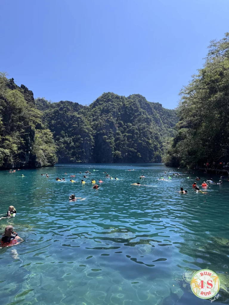 - Twin Lagoon: nuestra segunda parada en el día fue Twin Lagoon, una laguna doble conectada por un paso acuático cuando hay marea baja o por unas escaleritas. Aquí hay corrientes de agua fría y caliente que enturbian un poco el agua. Te ofrecen la opción de alquilar kayak pero no es necesario para visitar la laguna y si vas a otros sitios de Filipinas seguro que alquilarás en otra zona.