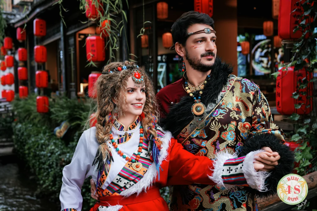 Si hay algo que les gusta en este país es vestirse con trajes tradicionales y hacerse muchas, muchas fotos. Esto es más llamativo aun en zonas rurales, donde los escenarios pintorescos aún incitan más a esta práctica. Encontrarás cientos de tiendas donde te ofrecen la experiencia. Eliges el traje, te maquillan y te visten y te incluyen una sesión fotos de las que luego seleccionas unas cuantas para el recuerdo. El precio suele rondar los 150-200 yuanes. Y como dicen que allá donde fueres haz lo que vieres… había que probar la experiencia!! Y cómo nos reímos. Nosotros elegimos el traje de etnia tibetana.. pero hay muchos diferentes.